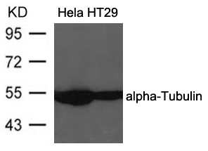 Western blot analysis of extracts from Hela and HT29 cells using alpha-Tubulin Antibody  #21581.