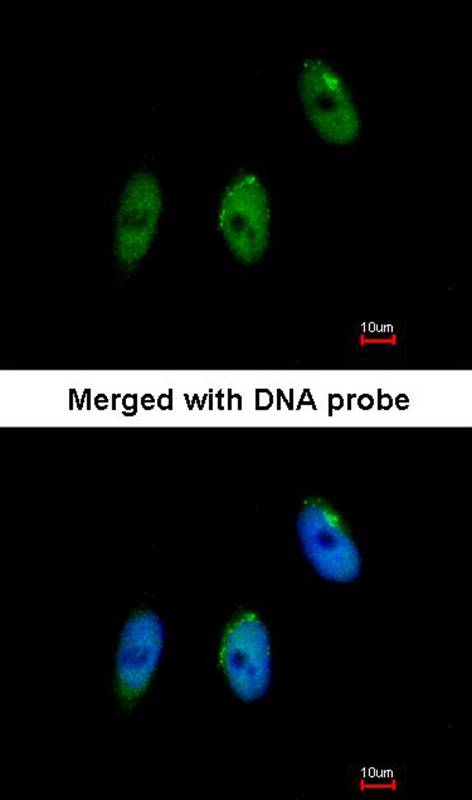 Immunofluorescence analysis of paraformaldehyde-fixed HeLa, using ELP3 antibody at 1: 100 dilution.