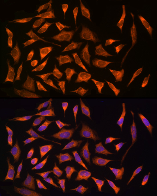 Immunofluorescence analysis of HeLa cells using NOD2 Rabbit pAb.