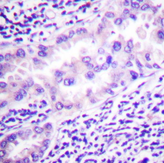 Formalin-fixed, paraffin-embedded human colon tissue stained for PP2A(Phospho-Y307) using 13369 at 1/100 dilution in immunohistochemical analysis.
