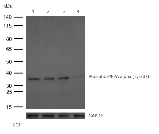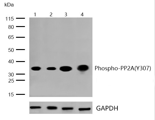 All lanes : PP2A alpha (Phospho-Tyr307) Rabbit mAb at 1/1k dilution